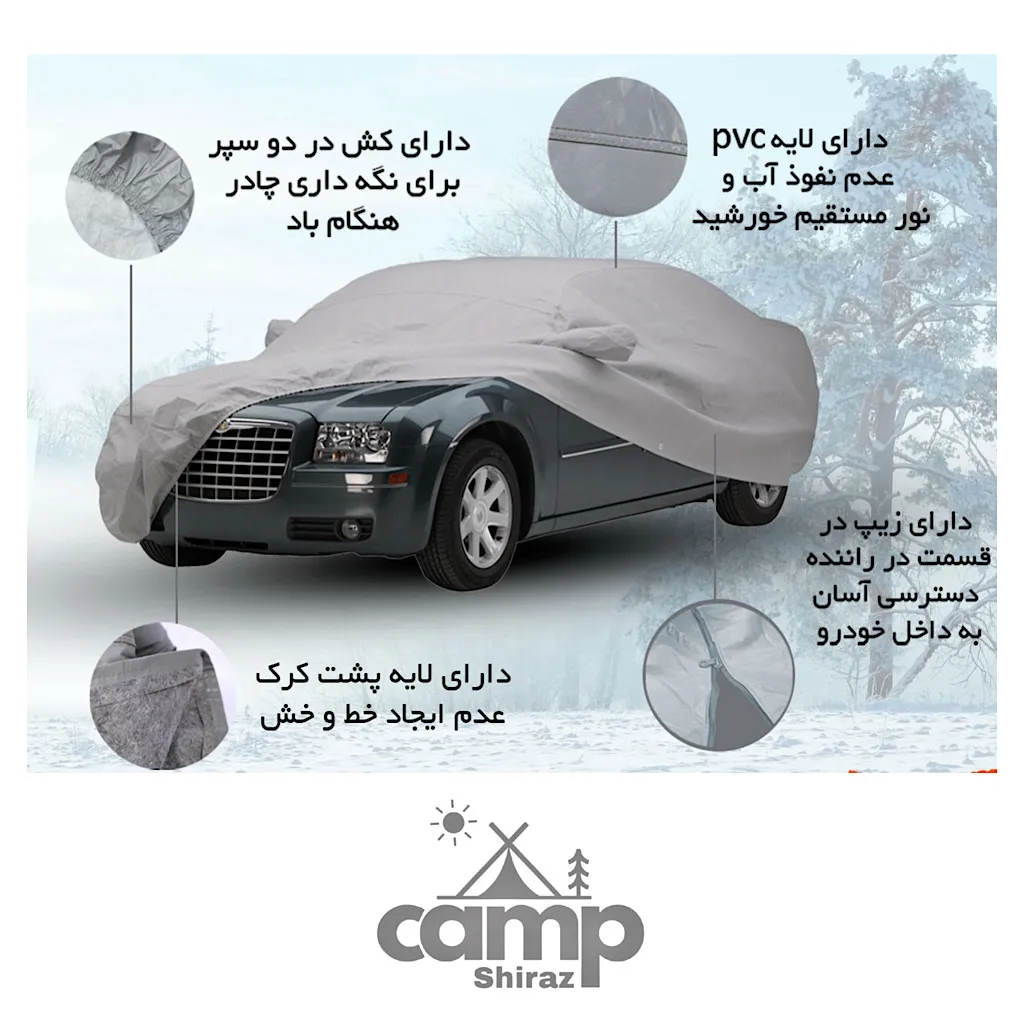 طراحی این چادر بهگونهای است که برای تمامی فصول سال کاربرد دارد. در زمستان مانع نفوذ باران و برف و در تابستان مانع از داغ شدن بدنه و داخل خودرو میشود.