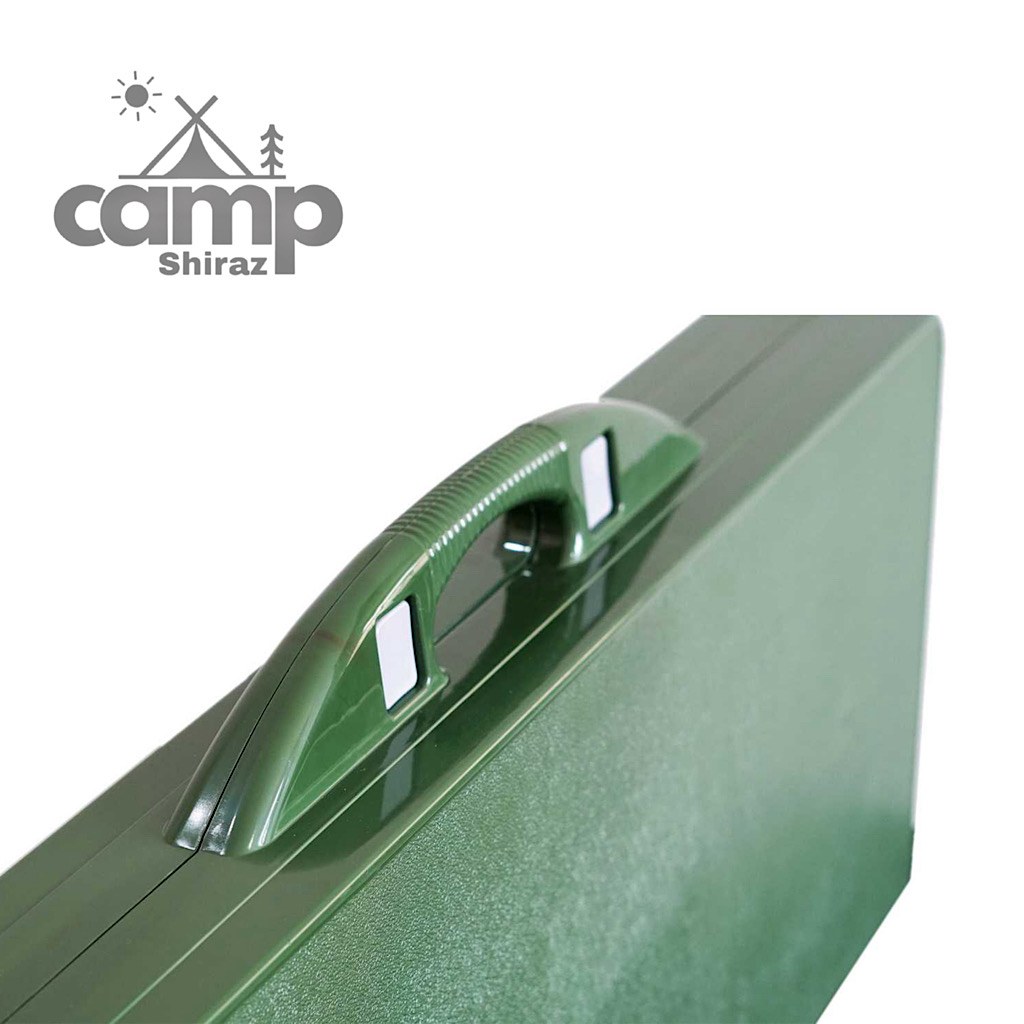 این مجموعه شامل 4 صندلی و یک میز جمعوجور است که به راحتی داخل یک کیف مهندسی شده قرار میگیرد. کافی است کیف را باز کنید تا تمامی صندلیها و میز به سرعت و در عرض چند ثانیه آماده استفاده شوند. طراحی جعبهای و جمعشونده این محصول باعث میشود حمل و نقل آن آسان باشد و با دسته تعبیه شده روی کیف، بتوانید آن را به راحتی جابهجا کنید. این مجموعه از مواد پلیمری با کیفیت بالا، پروفیلهای آلومینیومی مقاوم و شاسیهای آهنی ساخته شده تا علاوه بر سبک بودن، تا نیم تن وزن را نیز تحمل کند.